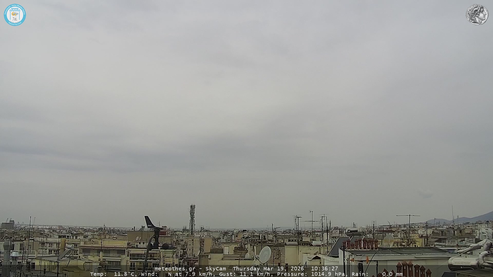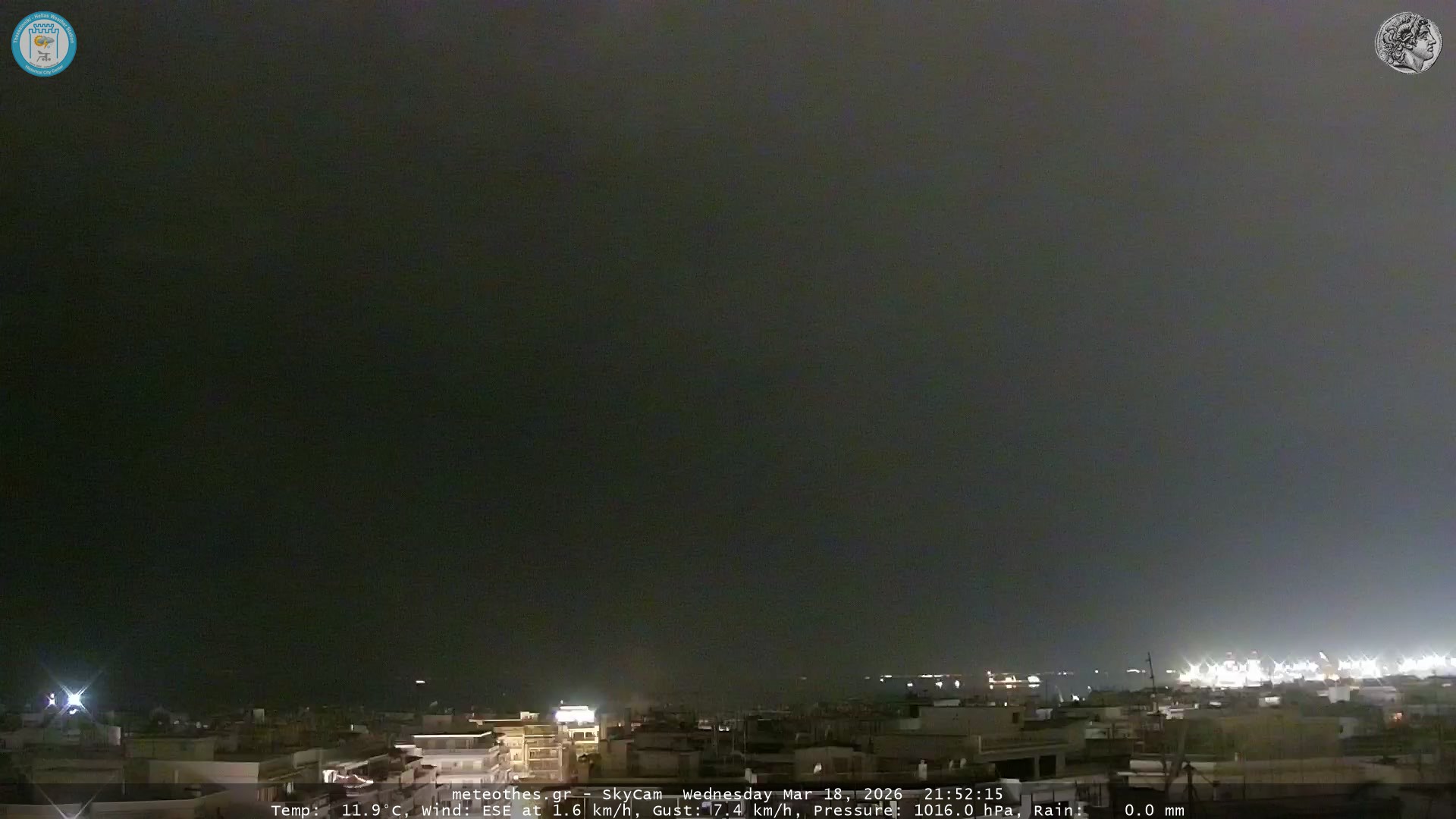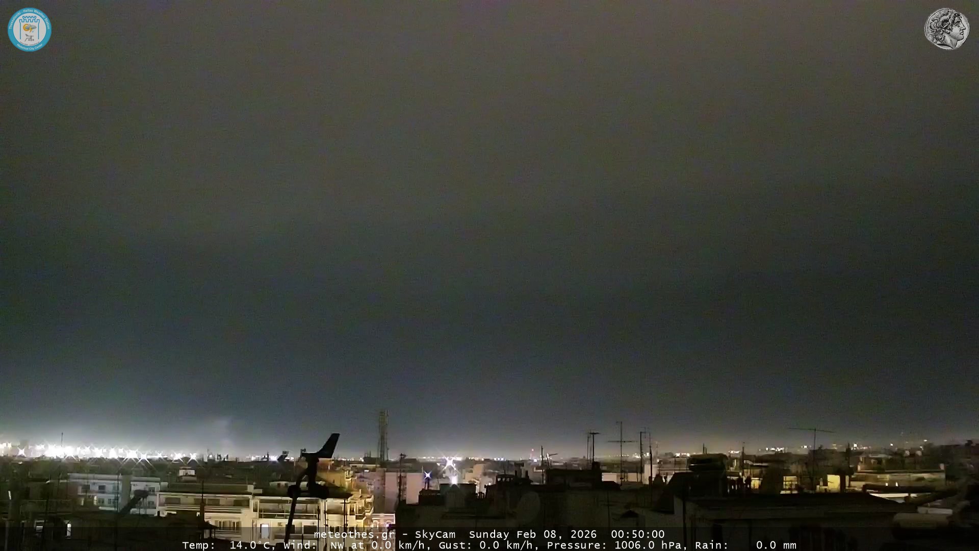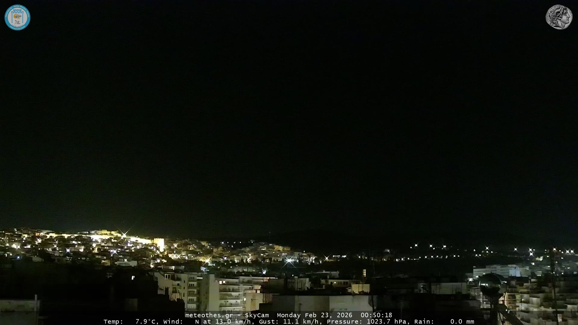 Ζωντανή Ροή Περιστρεφόμενης Κάμερας Ουρανού Ιστορικού Κέντρου Θεσσαλονίκης - Πατήστε |