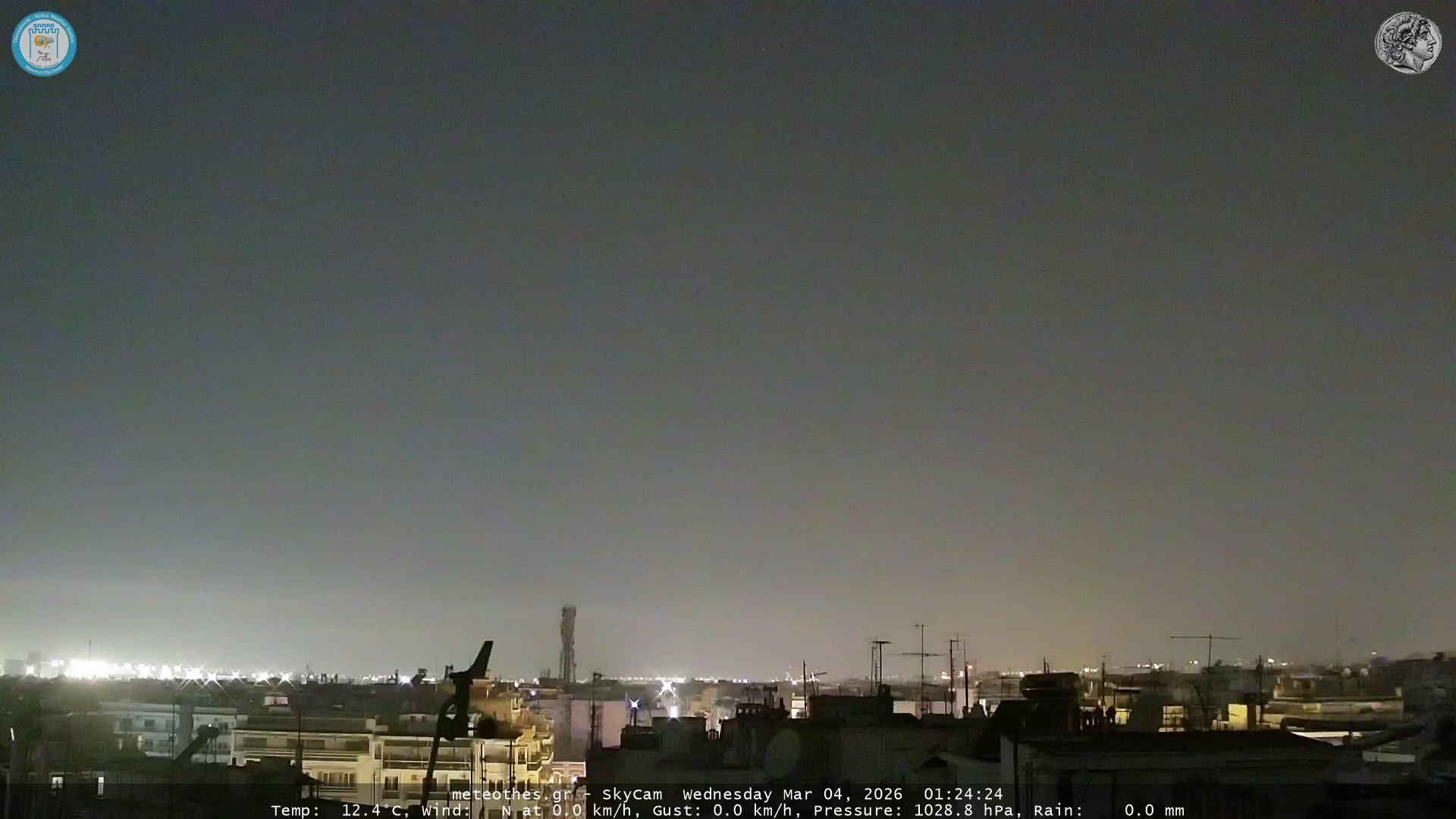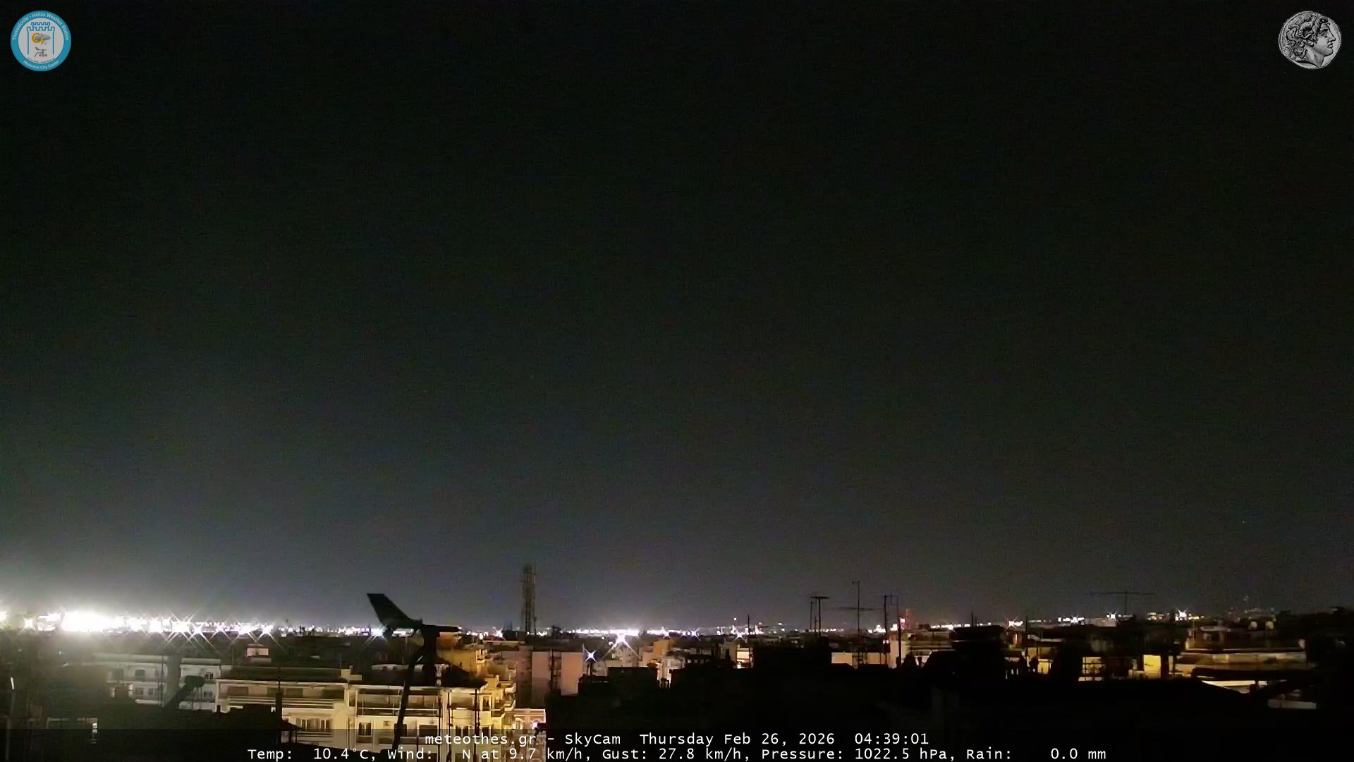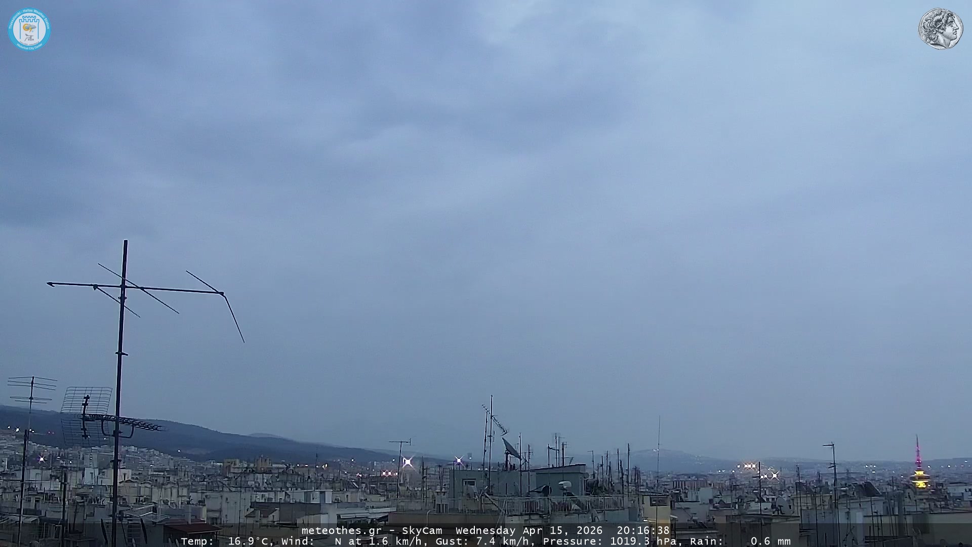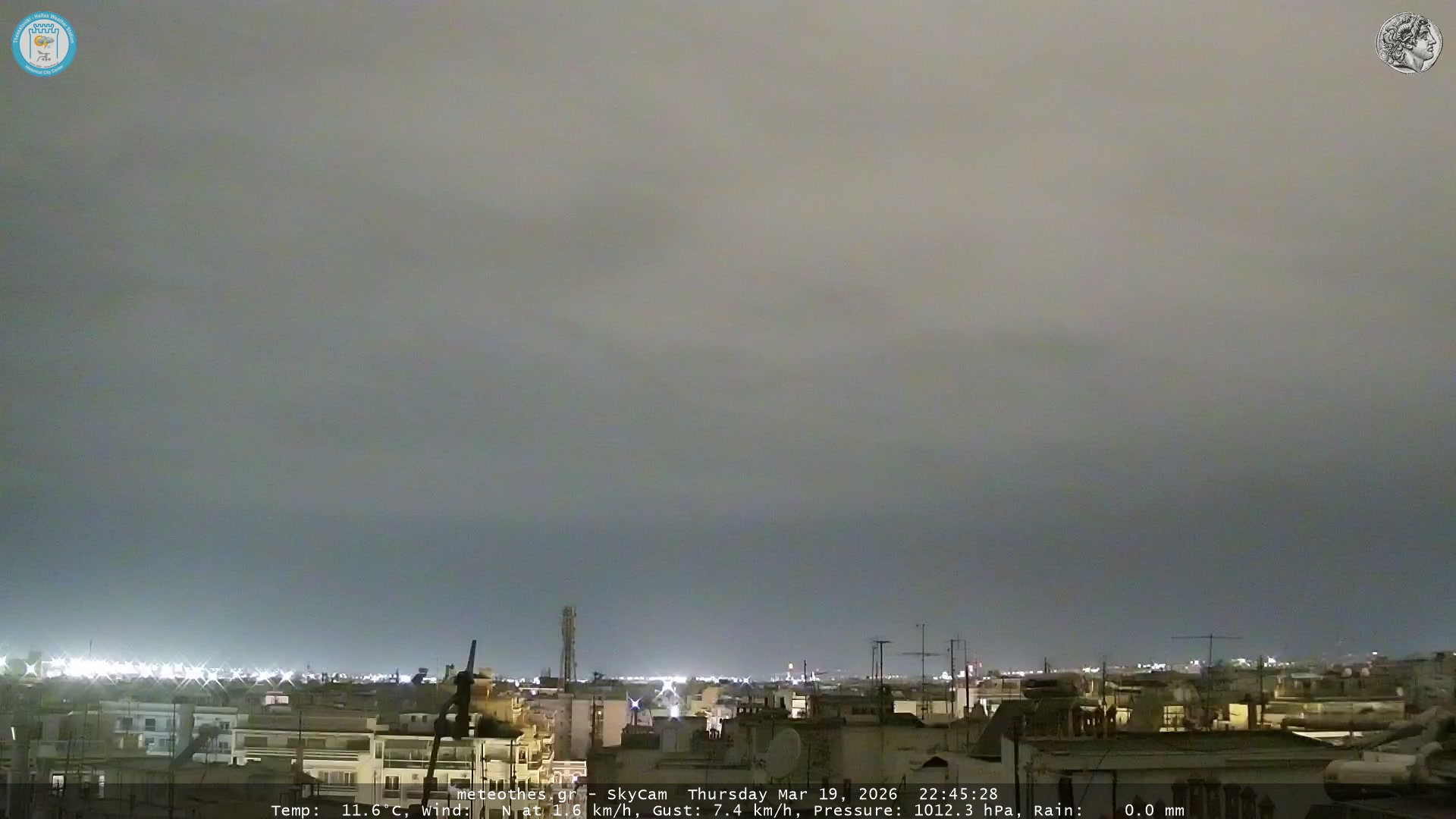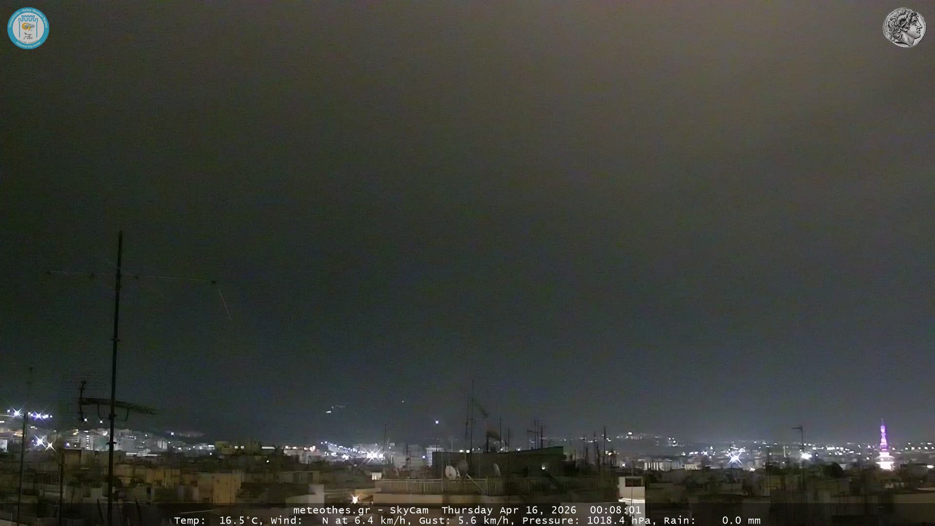 Ζωντανή Ροή Περιστρεφόμενης Κάμερας Ουρανού Ιστορικού Κέντρου Θεσσαλονίκης - Πατήστε |