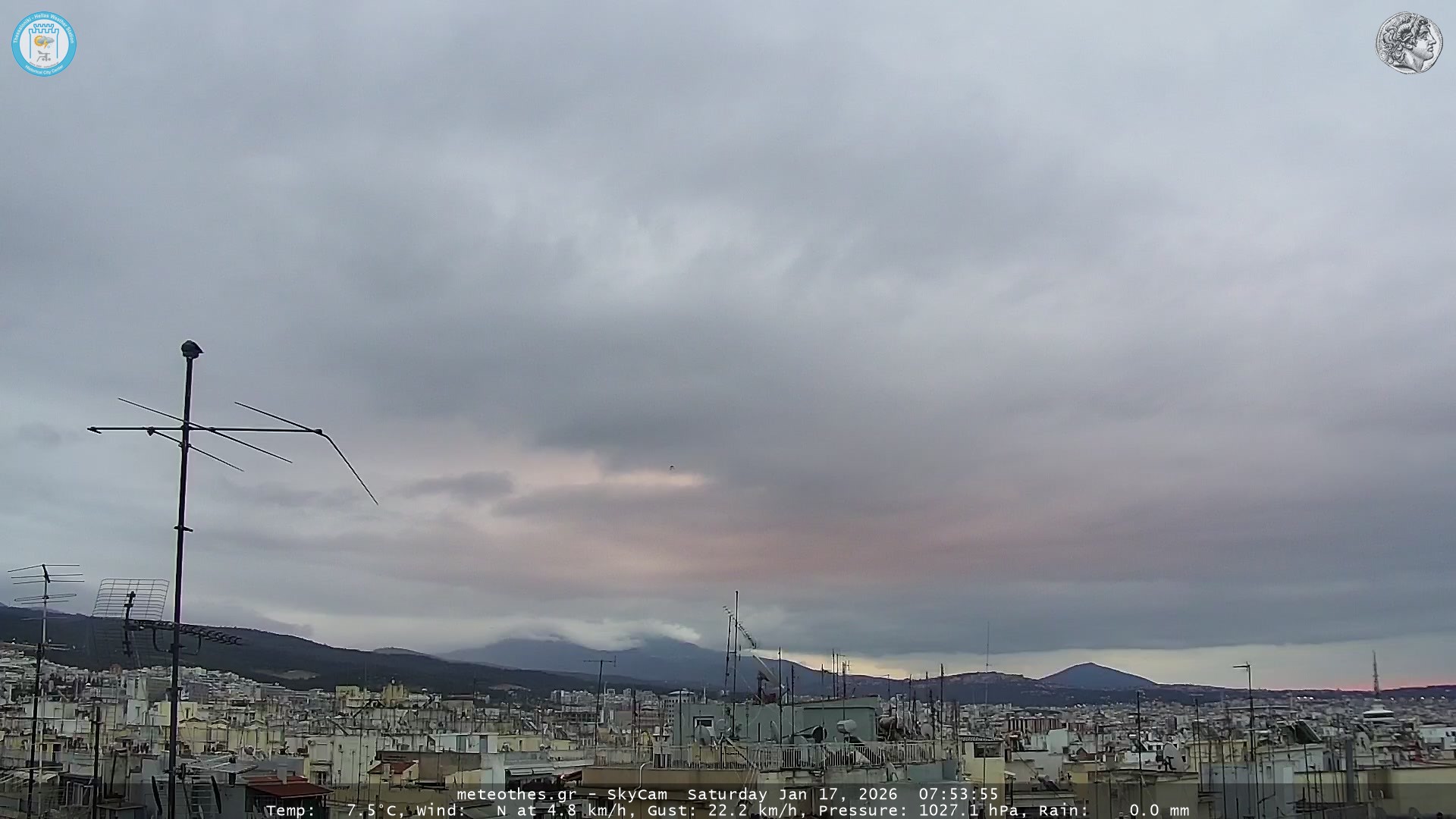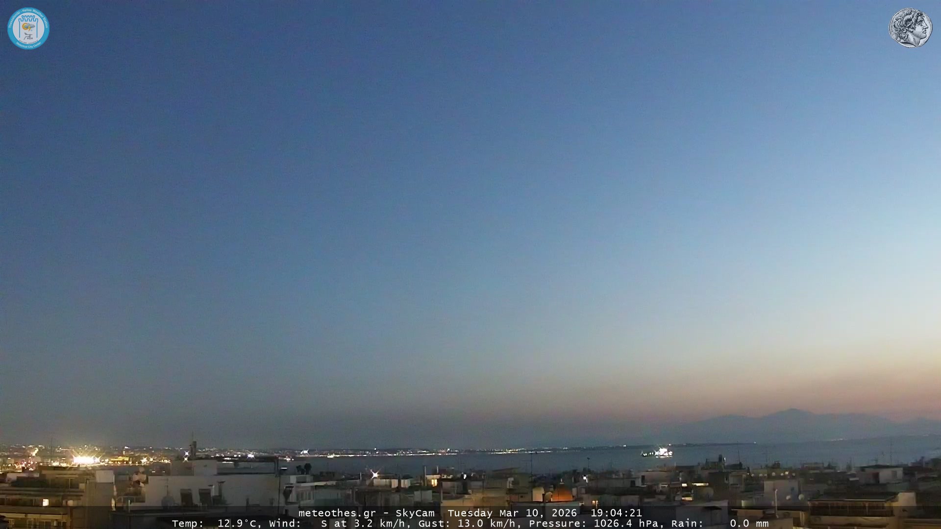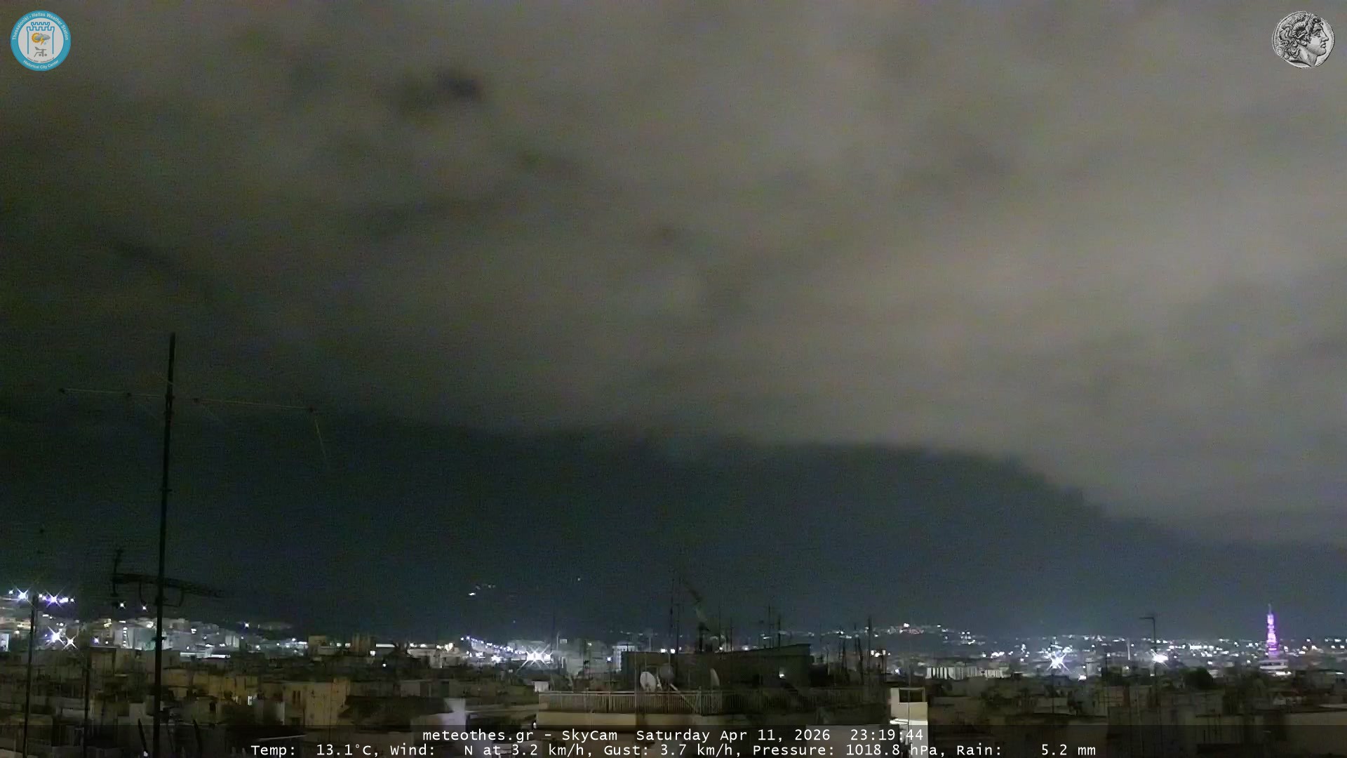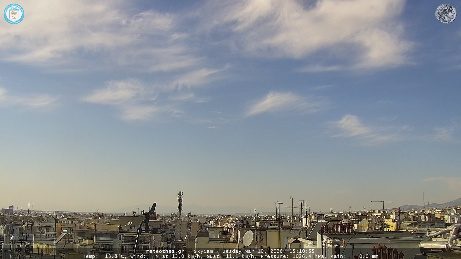 Ζωντανή Ροή Περιστρεφόμενης Κάμερας Ουρανού Ιστορικού Κέντρου Θεσσαλονίκης - Πατήστε |
