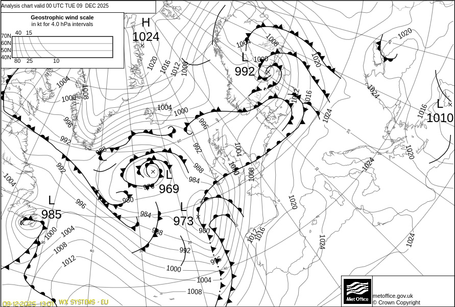 Η κυκλοφορία των αερίων μαζών σε Βαρομετρικό Υψηλό Οι Αντικυκλώνες με τη σειρά τους διακρίνονται σε Ψυχρούς, Θερμούς, Ψυχρούς και Θερμούς. Ψυχροί είναι οι αντικυκλώνες πού έχουν σε όλο το ύψος θερμοκρασία μικρότερη από τις γειτονικές περιοχές. Τέτοιοι αντικυκλώνες σχηματίζονται το χειμώνα πάνω απ' τις ψυχρές περιοχές των Ηπείρων. Θερμοί είναι οι Αντικυκλώνες πού στο εσωτερικό τους και καθ' όλο το ύψος τους η θερμοκρασία είναι μεγαλύτερη από ότι στις γειτονικές περιοχές. Αυτοί οι Αντικυκλώνες συνήθως σχηματίζονται πάνω από θάλασσες, καθώς και στα νοτιότερα πλάτη πάνω από ηπειρωτικές περιοχές (Αφρική) κατά το χειμώνα. Τέλος Θερμοί και Ψυχροί είναι οι Αντικυκλώνες πού κατά ένα μέρος είναι θερμοί και κατά ένα μέρος ψυχροί. Επίσης οι Αντικυκλώνες διακρίνονται σε μόνιμους , εποχικούς και κινητούς. Οι Μόνιμοι Αντικυκλώνες σχηματίζονται πάνω από τους ωκεανούς των υποτροπικών περιοχών. Τέτοιοι Αντικυκλώνες στο Β. ημισφαίριο είναι του Ατλαντικού (Αζορών) και του Ειρηνικού. Είναι θερμοί Αντικυκλώνες και επηρεάζουν τις παρακείμενες ηπείρους με καλό καιρό, αν και τον χειμώνα μετατοπίζονται προς τον ισημερινό και δεν επηρεάζουν τις εύκρατες περιοχές. Οι Εποχικοί Αντικυκλώνες σχηματίζονται πάνω από μεγάλες ηπειρωτικές εκτάσεις κυρίως κατά την ψυχρή περίοδο και είναι εξ αιτίας αυτού συνήθως ψυχροί. Τέτοιοι Αντικυκλώνες είναι της Σιβηρίας και του Καναδά. Τέλος οι Κινητοί Αντικυκλώνες είναι πολύ μικρότεροι σε έκταση και σχηματίζονται σε περιοχές μεγάλων γεωγραφικών πλατών. Μετακινούνται όμως γρήγορα προς τα μικρότερα γεωγραφικά πλάτη μεταφέροντας πολύ ψυχρές αέριες μάζες. Σ' αυτούς οφείλονται συνήθως οι ψυχρές εισβολές και οι χιονοπτώσεις των εύκρατων και υποτροπικών περιοχών. Στον χάρτη καιρού της εικόνας πού ακολουθεί έχει αποτυπωθεί ένα Βαρομετρικό Χαμηλό πάνω απ' την Ιταλία, και ένας Αντικυκλώνας πάνω από τη Λιβύη.