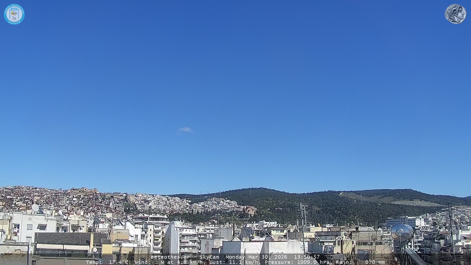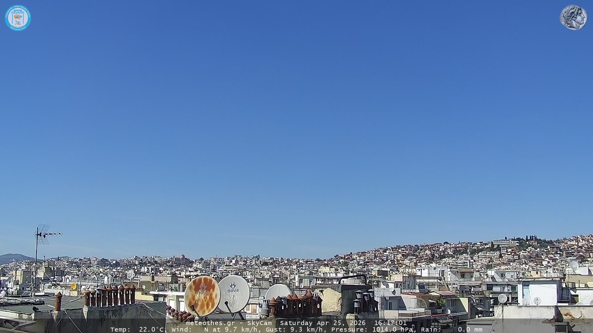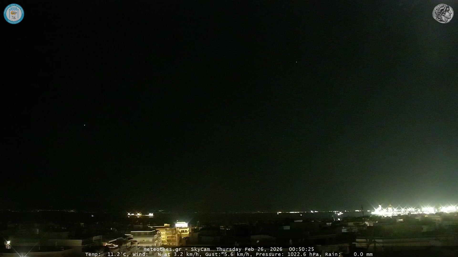 Ζωντανή Ροή Περιστρεφόμενης Κάμερας Ουρανού Ιστορικού Κέντρου Θεσσαλονίκης - Πατήστε |