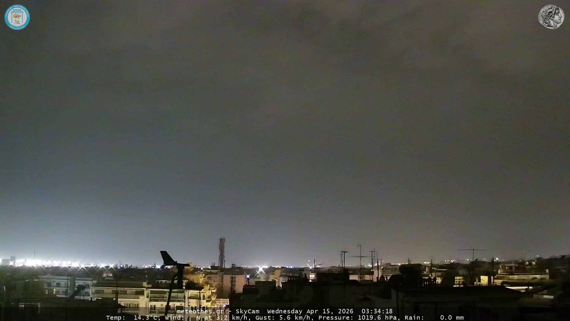 Ζωντανή Ροή Περιστρεφόμενης Κάμερας Ουρανού Ιστορικού Κέντρου Θεσσαλονίκης - Πατήστε |