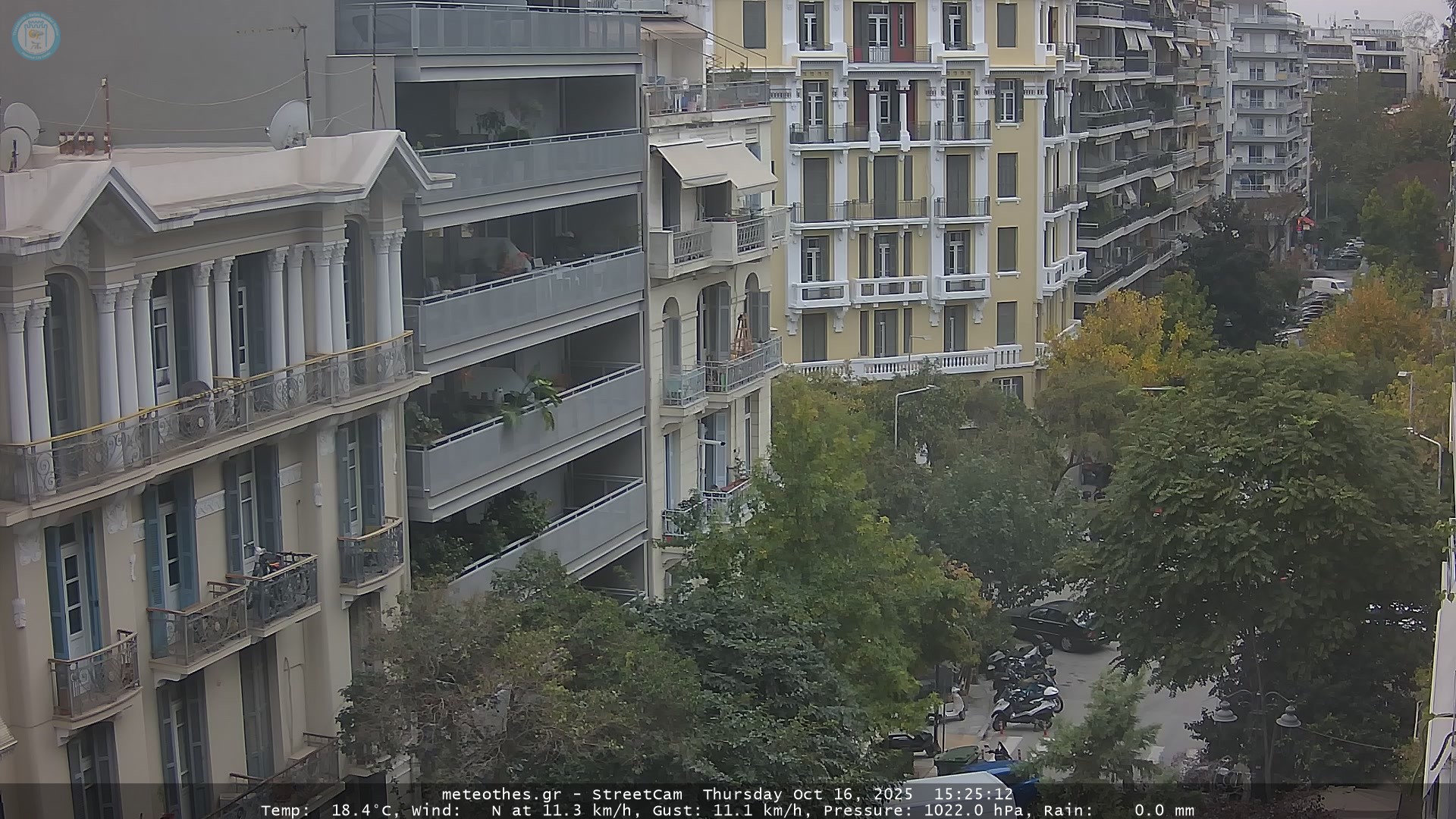 Η κάμερα αυτή, αποτελεί μέρος του Μετεωρολογικού Σταθμού στο Ιστορικό κέντρο της Θεσσαλονίκης. Θέα προς Ν-ΝΔ. Αυτόματη ανανέωση κάθε 20 δευτερόλεπτα. Δείχνει: ΝΔ μέρος της Π.Π. Γερμανού, που διασταυρώνεται με τίς οδούς Παύλου Μελά, Τσιμισκή, Μητροπόλεως, Κόυσκουρα και καταλήγει στη Λεωφόρο Νίκης δίπλα στη θάλασσα. |